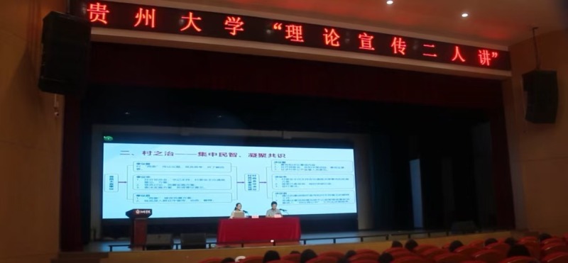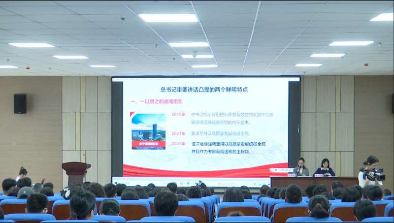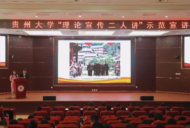 青春誓言践行时代使命。贤正楼报告厅内座无虚席,建筑与城市规划学院党委书记余压芳教授、资源与环境工程学院博士生王艳共同讲述深入学习贯彻习近平总书记在贵州考察时的重要讲话精神的重要性。余压芳强调要“在感恩中成长,在奋斗中担当”。王艳则号召同学们 “以‘功成不必在我,功成必定有我’的担当,在展现贵州新风采中书写属于贵大青年的华美篇章。”视频新闻评论区的一则留言情感真挚:“这场宣讲是我毕业前珍贵的一课!保研大连理工大学后,我将继续钻研装备制造技术,因为科技自立自强是高质量发展的根基!”
