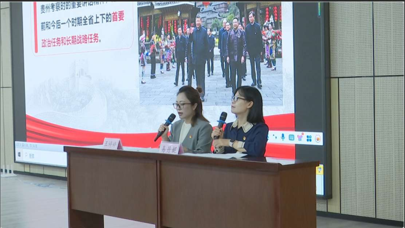 现代化图景的贵州担当。在贤正楼报告厅,刘丽莉副教授与酿酒与食品工程学院贾玉龙副教授以《在中国式现代化进程中展现贵州新风采》为题,向300余名师生展开生动宣讲。通过丰富的案例和详实的数据,介绍了贵州近年来在大数据产业、新能源产业、乡村振兴等方面取得的显著成就,展示了贵州在中国式现代化进程中的独特优势和发展潜力。