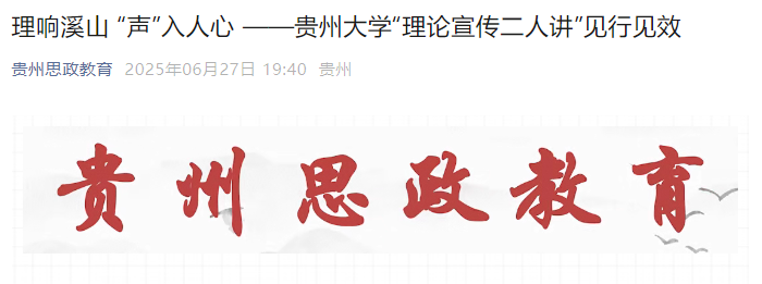 依托学校多形式、多层面、立体化传播格局,充分运用校内外媒体资源开展优秀宣讲队伍的经验分享、宣讲理论成果展示工作。充分发挥“溪山融媒”矩阵优势,开设专栏进行主题宣传,在《yl6809永利官网报》等平台开设“学习贯彻习近平总书记在贵州考察时的重要讲话精神”专栏,刊登校内外学者理论文章以及理论的深化研究和阐释、师生心得体会等;邀请专家学者录制专题思政微课,发布在微信视频号、抖音、快手、B站等视频平台。同时,用AI赋能理论宣讲,通过溪山融媒中心数字人“智小宣”宣讲习近平总书记在贵州考察时的重要讲话精神,以青年喜闻乐见的形式让理论入脑入心。同时,用好贵大学工、贵研新声、贵大青年等二级网络媒体平台,进一步提升学习贯彻习近平总书记在贵州考察时的重要讲话精神的自觉性。