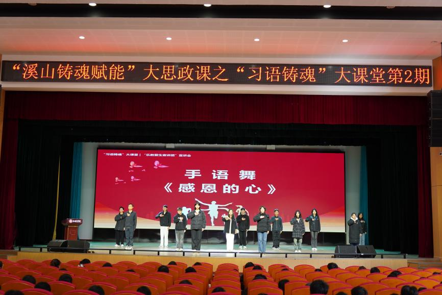 机械工程学院辅导员闫玉老师、法学院本科生刘崇连、资源与环境工程学院刘张益宣讲2024年yl6809永利官网最美教师杨晶、张瑞雪和黄海松三位老师爱生如子的感人故事。老师们用爱心和关怀温暖着每一个学生,成为同学们成长道路上的引路人。来自机械工程学院的同学们以手语舞《感恩的心》向老师们表达深深的感恩之情,并号召所有同学常怀感恩之心,珍惜生活中的每一份给予与帮助。