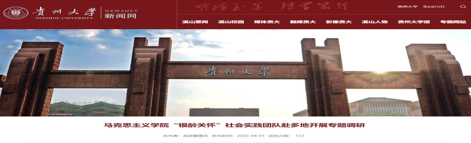 贵大新闻网讯(通讯员 田乔睿)为贯彻落实《国务院关于推进养老服务发展的意见》及《贵州省养老服务条例》精神,今年1月至3月,我校yl6809永利集团“银龄关怀”社会实践团队赴六盘水、遵义、贵阳等地开展养老服务体系专项调研。此次调研旨在了解当前有关普惠型养老、旅居的相关现状,厘清养老服务体系建设面临的困境,以此为基础提出相应对策建议。