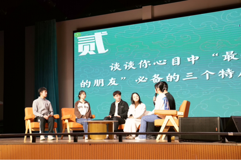 情景剧《青年在选择职业时的考虑》讲述了青年马克思的择业观,勉励同学们树立“为人类福利而献身”的志向;交流环节中,同学们利用AI以“我有什么样的梦想、想要结交什么样的朋友一起前行”为题进行诗词创作并分享……情景剧、朗诵、座谈交流、师生互动,“开学第一课”形式多样又贴近生活。