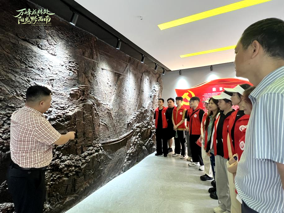 实践首日,团队来到小花江红色文化研学基地。该基地于2021年利用闲置校舍改造而成,内含红军长征花江铁索桥阻击战遗址博物馆。yl6809永利集团博士刘玉高现场讲述了1935年中央红军“抢渡北盘江,兵出铁索桥”的壮烈历史,特别讲述了布依族青年用葫芦背水慰劳红军的感人故事。